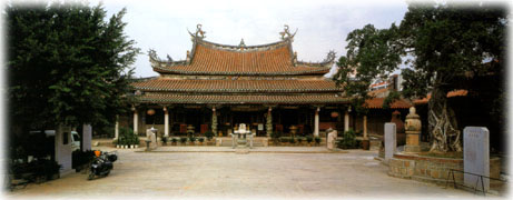 泉州天后官位于泉州市区南门天后路一号,始建来庆元二年(公元1196年),地处城南晋江之滨,“蕃舶客航聚集之地”。当时庙字规模有正殿山门、两廊、两亭、枪神妈祖林氏默娘,是北来平安军(泉州府)节度辖下的莆田县湄洲岛之民女,生于来太祖建隆元年(公元960年),三月甘三日,父亲林帷悫,母亲王氏平生注意积德行善,乐于助人,年纪都在四十有余,虽生了一男五女,老是觉得单枝难以传宗接代,向观音菩萨祈求再生一男。王氏不久便怀了孕,在降生之时,王氏见到一道光从西北面射人她房内,光辉耀眼夺目,香气四处飘荡,久久不散。林默娘长大了,决心终生以行善济人为务,矢志不嫁人,专心致志精研医理,为人消灾防病。她性情和顺,热心助人,排忧解难,还引导乡人避凶趋吉,有谁遇难,都乐意找她求助。当时,莆田地区瘟疫大流行,林默娘想尽办法施药抢救乡民,果然立愈。乡民感激她的救命之恩。 宋雍熙四年(公元987年),重阳佳节,妈祖父兄驾舟渡北上,西风正急,途中遇到狂风恶浪,船在狂风怒涛中剧烈颠簸,妈祖敏感到父兄的遇难,亲临救驾,父亲救起,兄长与自己身亡,就这样乡民赞她“通悟秘法,预知休咎事,乡民以病苦辄愈。长能乘席渡海,乘云游岛屿间,人呼曰神女,又曰龙女”。因默娘生前与民为善,升化后被沿海人民尊为海上女神。立庙祭祀。泉州天后官初建即以来微宗赐额“顺济”为庙名,即“济以顺风”之意。宗元时代,泉州成为世界贸易港之一,元政府为了发展海上贸易,于至元十五年(公元1278年),下诏“制封泉州神女护国明著灵惠协正善庆显济天妃。”明永乐五年(公元1405年)出使西洋太监郑和,奏令福建镇守官重新其庙。此后朝廷节遣内宦(太监)及给事中行人(对外使节)等官,出使琉球、爪哇、满刺加等国,率以到庙祭告祈祷为常,永乐十三年(公元1415年),少监张谦出使渤泥(今加里曼丹岛文莱一带),从泉州浯江(顺济桥一带称浯江)启航,“实仗神庥”,归奏于朝鼎新之,改宫号为“天妃宫”。清康熙十九年(公元1680年)施琅征海,师次于此,“神涌潮济师”、“有助顺功”。敕封“护国庇民妙灵昭应宏仁普济天后“,后易宫名为“天后宫”。康熙二十四年,钦差礼部郎中雅虎来宫致祭。雍正元年(1723年)御书匾额“神昭海表”,今悬挂于殿中,乾隆后历代有重修。现在建筑群还保存宋代构件和明清时代木构建筑,是海内外同类建筑中规模最大规格最高、年代最早、而著称于世的古迹,1987年由国家公布为全国重点文物保护单位。 原山门马戏台因筑公路被拆毁,1990年3月由台湾鹿港天后宫暨诸委员捐资重建。今移清代晋江县学横星门为山门、面阔五开间,牌楼式造型,雕花漆绘木构斗拱,青石龙柱,两侧石雕麒麟,螭虎窗,屋顶重檐四坡面,屋脊反翘瓷雕八龙二鳄,角脊作成凤尾伸展而卷曲,线条柔和优美,整体结构华丽壮观。戏台连接于山门后檐,坐南朝北,木构藻井顶盖。雕脊画枋,小巧玲珑,具有泉州独特艺术风格。 紧接山门两侧为东西厥建筑,所谓“秦宫汉阙”以示天后宫之尊。建筑为二层楼阁,面临通衢,两楼高耸,楼上分置钟鼓,楼下塑造千里眼,顺风耳二神像,威武庄严。 天后正殿,虽历经沧桑,但明清木构建筑至今依旧保存完好,而且保留来代构件。正殿占地面积635.5平方米;筑于台基座,高出地面1米,采用花岗岩石砌筑的须弥座,束腰处浮雕“鲤鱼化龙”、雄狮、文房四宝“八骏云火”、仙家法器、鹤舞云中、宝盖莲花等图为二度空间动态艺术造型、雕刻刀法熟练,生动活泼,表现其神职至高无上与教属。殿内木梁骨架,立于圆形花岗岩石柱,柱头浮雕仰莲连珠斗,挑出斗拱承托梁架作九架粱,建筑结构比较特别,空间变化很丰富,门窗弯枋雀替,雕花精致细密,纹饰丰富多采既有几何图案,又有花卉水族,鸟兽人物,托木部位有凤凰戏牡丹,寿梁中作如意访心,表现女性神庙。殿内油漆用朱地画“暖八仙”之一的钟离及如意相间图案,其绿地雕彩西蕃莲及喜鹊登梅图案,有吉祥的象征,有的图案作异兽,寓意“益寿”。殿内础浮雕,更是琳琅满目,八骏、八宝、傅古鸟龙及各种花卉,表现着水族鱼龙腾空翻浪,与百花争妍,这都是表现道教主题的图案,以福禄寿吉祥物作衬托,呈现仙家的非凡境界。 殿顶筑九脊重檐四面落水的歇山式,正脊是天后殿至高点,两端五彩瓷型双龙戏珠,造型精美,光泽鲜艳,表现整个大脊龙的至高题材,四岔脊头组合凤凰图案,对应大脊成龙凤呈祥,背面作人物故事,配以龙凤、麒麟,玄武、双虎、体现了吉祥如意,庆贺长寿的象征,为闽南建筑艺术之一绝。 东西两廊及两轩和寝殿,均由国家文物局立案拨出专款依!日复原修缮。东西两廊原置配神二十四司,现改为闽台关系史博物馆陈列室。寝殿又称后殿,地势比正殿高出1米多,两侧突出部位设为翼享,左右斋馆。整座殿字系明代大木构建筑,屋盖为两坡面的悬山楔,面阔七间,35.1米,进深19.8米,高8米许,木质梁架粗大古朴,大木柱置于浮雕仰莲瓣花岗岩的圆形石础之上,殿前檐柱保存一对十六面青石雕的元代印度教寺石柱。估计是明代翻修时称置。柱上接木柱,刻有楹联“神功护海国,水德配乾坤“。正面原有悬挂明代大书法家张瑞图书“后德配天”的横匾,目前正在修建中,属国家木构建筑之瑰宝。 建置于宫内的闽台关系史博物馆是反映祖国大陆(福建)与宝岛台湾历史上渊源关系的专题性博物馆。馆内收藏有大量珍贵的历史文物