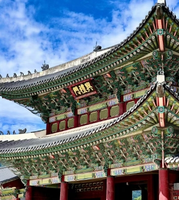 【景福宫】(参观约 60 分钟)朝鲜王朝保存最完整的一座宮殿。素有韩国故宫之称,坐落于繁华的首尔市中心的一角。景福宫距今已有 600 多年历史,得名于《诗经》“君子万年,介尔景福”,当一回韩剧主角,(如遇周二景福宫闭馆,则安排【德寿宫】替换)。