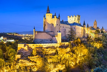 ◆【塞戈维亚城堡】(外观,不少于20分钟)这座城堡始建于12世纪初,位于塞哥维亚城西端,正处当时城市要冲,视野绝佳。蓝色的屋顶的建造采用了当地河流中的一种片岩,在光线底下会产生一种金属般的光泽。据说当年迪士尼公司以它为蓝图,设计了“白雪公主”城堡,因此又名“白雪公主城堡”。