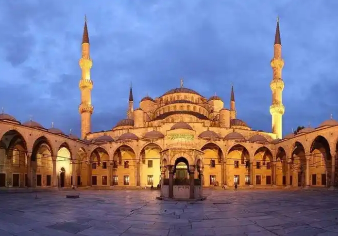 前往【蓝色清真寺】(游览时间:约 30 分钟),世界上独一无二的清真寺,一般的清真寺只是有四根唤礼塔,但它却有六根,寺外有一个大花园,可看到伊斯坦布尔最美丽的景色