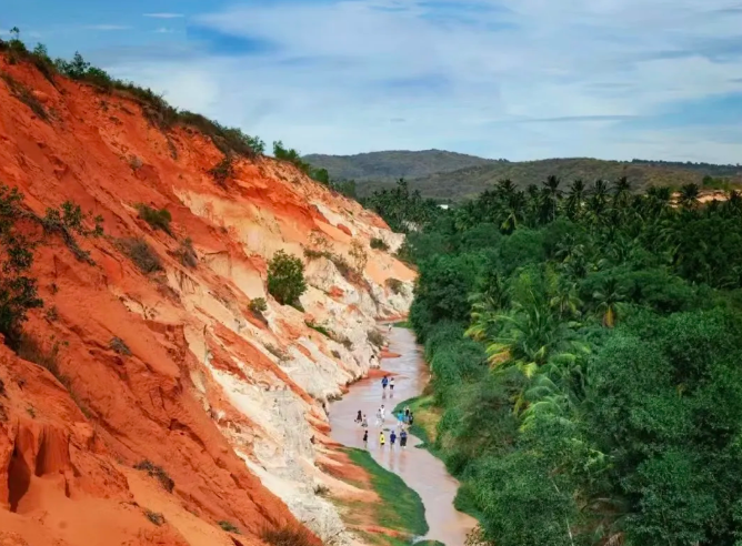 早餐后事,前往【耶稣山】风景头顿耶稣像是位于越南头顿市的一个著名地标,建于1971年,是一座超大型耶稣雕像。这座雕像的高度为28米,其底座的台子就有10米高,使得整个雕像显得庄重而威严。雕像内部是中空的,有一座129级台阶的楼梯可以一直上到雕像的颈部,而雕像的两条胳膊则是阳台,分别可以容纳6个人。从这座雕像俯瞰到的景色相当壮观,是来越南头顿必游之处。要登顶朝拜头顿耶稣像,需要走几百级的台阶。雕像内部是中空的,有楼梯可以一直上到雕像的颈部,不过爬上去要有一定的胆量。风景还是不错的,可以看海景和俯瞰头顿市。若要进入耶稣像内部,需要脱鞋,而且不可背包入内。耶稣肩部的位置相当狭小,只容两个成年人并排站立,但这里确实是眺望南中国海和头顿市区的绝佳角度然后前往越南渔村美奈约3小时,前往著名的【白沙丘】,白沙丘方圆两公里左右,沙丘呈新月形,沙粒细腻,曲线曼妙,沙雾随风起。踩在松软的沙石上,起伏连绵。人像是要陷进去,实际上却能完全自如地掌控身体。土路与沙丘之间有面湖,清澈而深邃。湖里长满了水草与荷花,衬得湖水清雅之极,触手便可捞起沙丘的倒影;【红沙丘】欣赏日落,红沙丘是一片热情的土地,说这里适合看日落一点也不假,当夕阳的余晖笼罩美奈时,很难分得清,这红沙丘是浑然天成,还是被染红。【仙女溪】,晚餐后入住酒店