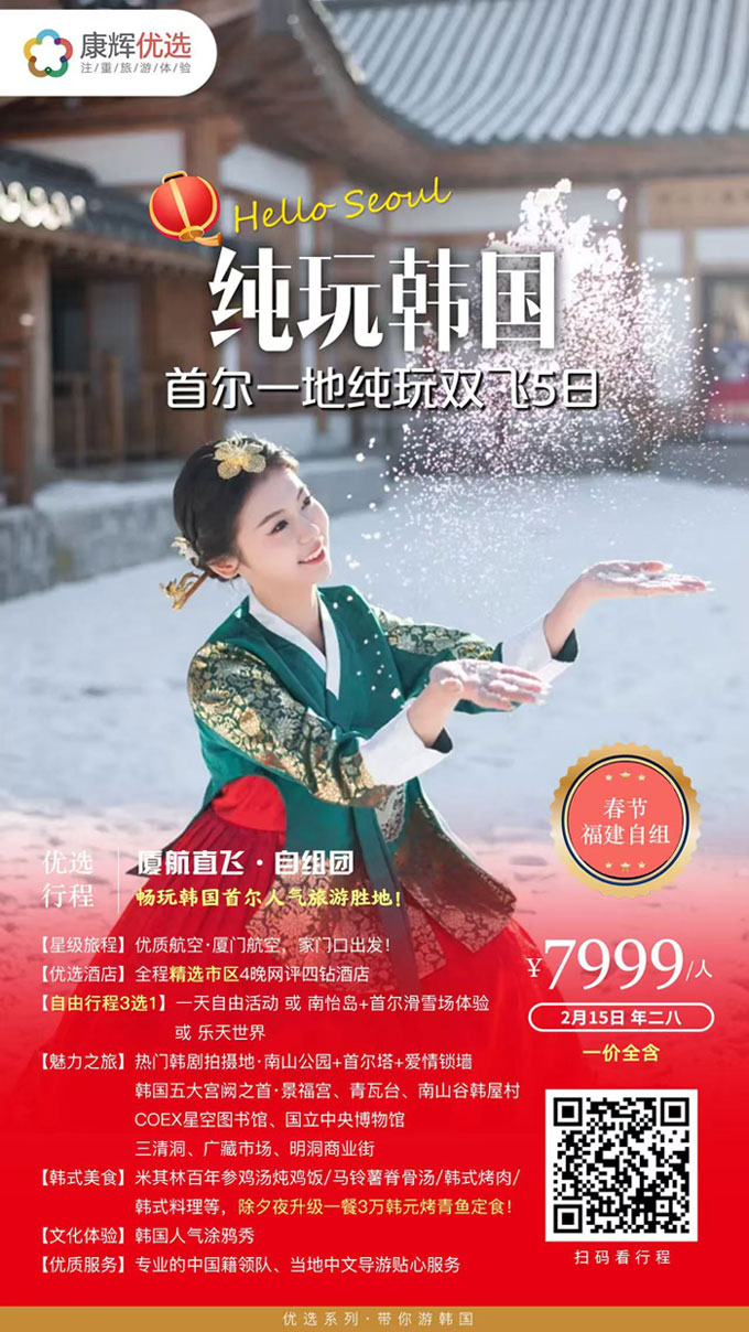 当前位置:首页 >> 动态信息 >> 行业动态信息 >> 2026年春节厦门出发韩国纯玩首尔一地5日游