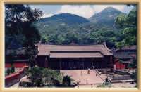 涌泉寺居闽刹之冠,建在海拔455米的山腰处,面临香炉峰,背枕白云峰。相传因寺前有罗汉泉涌出地面而得名。相传涌泉寺所在地原是一个深水龙潭,有毒龙占据,时常出来危害百姓。唐建中四年(783年),太守裴胄请灵峤禅师入山来诵华严经降龙,并在龙潭边建一个小寺,名为华严台,不久后荒废。至五代后梁开平二年(908年),闽王王审知大兴土木,填潭建寺,并到闽侯雪峰寺邀请神晏法师来涌泉寺住持,取名"国师馆"。宋咸平二年(999年)正式赐额"白云峰涌泉禅院",明永乐五年(1407年)赐名"涌泉寺",清康熙三十八年(1699年)康熙皇帝钦笔御颁"涌泉寺"泥金匾额。 涌泉寺分别于明永乐六年(1408年)及明嘉靖二十一年(1542年)两度毁于大火,明崇祯七年(1634年)重建,到清代又几次修建后,于1983年重修至今,如今的涌泉寺基本上保持了明清两代的建筑风格和布局。整座佛寺有大小殿堂25座,以天王殿、大雄宝殿,法堂三大殿堂为主体、依着山势层层上升、构成完整的古代建筑组群。 涌泉寺前两侧的两座千佛陶塔,是北宋元丰五年(1082年)烧制的,左边一座称“庄严劫千佛陶塔”,右边一座称“贤劫千佛陶塔”,双塔是用陶土分层烧制累叠而成,八角九层,高约7米左右。塔身细部为仿宋代木构楼阁建筑风格,两座塔上各塑1038尊佛像,因而叫做千佛宝塔,八角塔檐另塑有僧人武将各36尊,悬挂陶制塔铃72枝。塔座上塑莲瓣、舞狮、侏儒,并刻有铭文,记载建塔时间和工匠姓名等。 双塔原座落在福州市城门龙瑞寺,1972年时移到涌泉寺前。这种用陶土烧制的大型宝塔乃全国罕见,具有很高的历史价值,是珍贵的文化遗产,现被列为省级文物保护单位。 天王殿正中一位笑容可掬的大肚弥勒佛身着汉装,这是以五代时期浙江奉化一位名叫"契此"的布袋和尚为原型塑造的,相传他是弥勒佛的化身,因此弥勒佛也叫布袋佛。清代福建按察使王廷珍写的一幅对联,上联是"日日携空布袋,少米无钱,却剩得大肚宽肠,不知众檀樾信心时,用何物供养?"下联是"年年坐冷山门,接张待李,总见他欢天喜地,请问这头陀得意处,有什么来由?"通俗风趣,却又耐人寻味。 殿内两厢是四大天王,据说他们是佛教寺院内东西南北四面天的保卫者。四大天王职责合成象征为"风调雨顺,国泰民? 在弥勒佛像背后,站立着一尊韦驮菩萨,他是护法天神。据说佛主的舍利子被魔王劫走时就是他去追回的。他行走如风,神速无比,也称善走之神,以勇武著称,忠实地护卫着寺院的安全。 天王殿后面。一个大天井,天井上方刻的"石鼓名山"四个字,这是清乾隆年间福州郡守李拔所题。天井中央的水池,引入山泉,清澈见底,池上卧着的小桥,名石卷桥,于北宋乾兴元年(1022年)砌成。天井两角立着一对用钢筋制成的圆形铁杆,杆尖超出寺院高度,每当寺院举行重大佛事活动时,用它来挂佛幛、佛幡之类,同时它还起着避雷的作用,是1927年马尾船政局捐造的。 天井两边为钟鼓楼,两楼建于明崇祯六年(1633年),1936年又重建,钟楼保存有一口清康熙三十五年(1696年)铸造的大钟,重约两吨,以铜为主,熔入少量金、银、铁、铝合金铸造成的,钟的表面铸有佛号和《金刚般若波罗密经》全文,共有6000多个汉字,称"金刚般若钟"。楼旁石柱对联曰:"百入晓撞潮声迭送;亿千恒觉梵呗同宣。"鼓楼上有一只大鼓,直径达1.8米,该鼓是用两大张牛皮蒙制而成的。寺院的规矩是"晨钟暮鼓",早晨敲钟,傍晚击鼓。每当举行重大佛事活动时,便以鼓声为号,击鼓鸣钟,以示隆重。 泰昌堂供奉的是涌泉寺开山祖师--神晏法师。祖师殿供奉着菩提达摩祖师。达摩祖师是南北朝时的天竺僧人,印度著名的佛教高僧,第一个远涉重洋来我国传授佛经的禅宗祖师。 大雄宝殿,这是涌泉寺三个主大殿的核心殿。大雄殿内供奉的是释迦牟尼三世佛,这三尊坐佛金像是明天启元年(1621年)福州民间艺人根据佛主释迦牟尼参禅的形象雕塑的,分别表示管过去、现在、未来,即管三世轮回之意。在释迦牟尼佛的两边分别站着是佛主的徒子迦叶尊者和佛主的堂弟阿难陀。大雄宝殿既是寺院举行重要佛事活动的场所,又是用来日常诵经作课的地方。 殿内佛像前两旁立着一对铜男孩,身穿红肚兜,神态栩栩如生,满面笑容,天真活泼,引人注目,他们是福州地区民间吉祥的化身,是1935年由一位福州工匠铸造的。 殿内两边的十八罗汉塑像,是清顺治四年(1647年)雕塑的。据说,当佛教传入我国时,只有十六罗汉,宋代以后,中国佛教界为了丰富自己的崇拜偶像,就将中国民间广为传颂的降龙、伏虎二位列入罗汉之中,就成了现在的十八罗汉。他们都是佛的大弟子,其地位仅次于菩萨。这里塑造的十八罗汉造型生动,各具特色,神态各异,具有较高的艺术价值。 释迦牟尼三世佛的背后供的是西方极乐世界的三圣立像。这是清代康熙年间采用当时最先进的蜡模铸造工艺铸成的铁佛,每尊重约1000公斤多,表面贴上金膜。这三尊铁佛:左边的是观世音菩萨、中间的是弥陀接引佛、右边的是大势至菩萨。弥陀接引佛就是南天阿弥陀佛。 "三圣立像"前的一张供桌,是鼓山"镇寺三宝"之一,这是由鸡丝木(也称铁木)制成的。据记载,供桌是康熙丙午年间(1666年)海外华侨弟子捐赠。它通热见潮,入水即沉,遇阴则潮,遇晴渐干,成了寺里的晴雨表。在两旁还有骑着虬首仙青毛狮的文殊菩萨和骑着灵乐仙白象的普贤菩萨。 法堂,是涌泉寺三个主大殿的后殿。是寺院里讲经说
