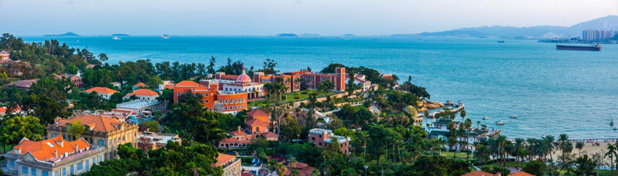 由厦鼓码头搭乘轮渡前往海上花园,美丽五大城区之首——鼓浪屿。鼓浪屿最鼎盛时期,从小路经过,几乎可以听到每家每户传出的钢琴弹奏声音,因而鼓浪屿又有「海上钢琴之岛」的盛名。