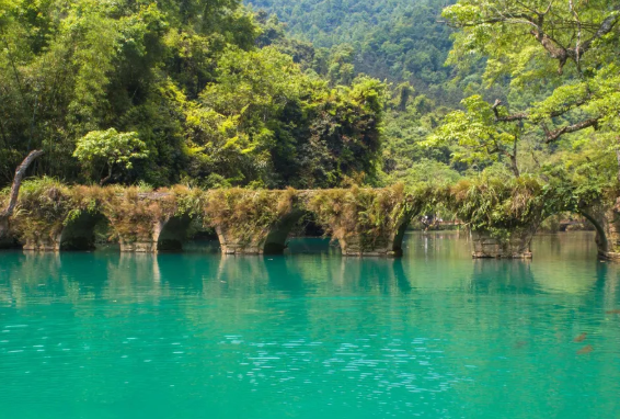 早餐后,乘车(约4H)前往荔波,游览世界自然遗产地,国家级AAAAA景区,中国最美丽的地方【小七孔景区】(不含电瓶车40元/人,保险10元/人,必须消费敬请自理)。景区坐落在宽仅1公里、长12公里的狭长幽谷里,集洞、林、湖、瀑、石、水多种景观于一体,玲珑秀丽,有“镶嵌在地球腰带上的绿宝石“的美誉。游览景区名字由来地【小七孔古桥】,古桥建于清代道光十五年(1835年),桥长25米,桥面宽1.8米,拱高4米,横跨响水河,昔为沟通荔波至广西的重要桥梁,桥由麻石条砌成,桥身爬满藤募和蕨类,古色古香的桥下是涵碧潭。两岸古木参天,巨大的虬枝沿着桥伸臂,宛如巨伞撑在桥上。欣赏景区灵动多姿的各色瀑布:【68级跌水瀑布】顺贽而下,奔泻而去;【拉雅瀑布】精巧醉人,水珠飞溅;【卧龙潭瀑布】银丝泻地,潭水色彩斑斓绚丽;【翠谷瀑布】在群峰紧锁中苍翠欲滴。感受赤足湿身乐趣的【水上森林】,清澈的水流冲刷着青石,行走于其中,宛若身临琼瑶仙池;在【鸳鸯湖泛舟】(不含鸳鸯湖游船30元/人,非必须消费项目,自愿消费)—寻找一份爱情;妩媚而迷人的【响水河】更是贯穿了整个风景区。