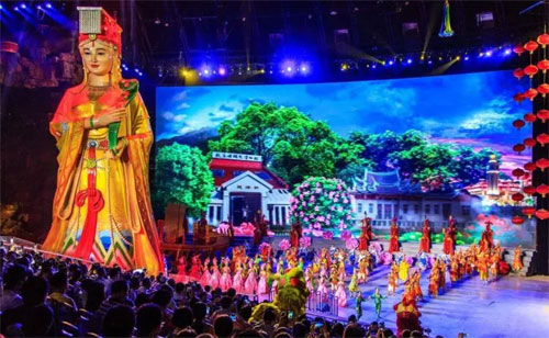 12:50 进入三万平方超大演艺剧场,乘坐会跑的观众看台,观赏世界首家顶级环绕室内实景舞台秀—【闽南传奇】; 13:30 演出开始,闽南传奇秀打破了五千年来单一的舞台观演模式,通过移动看台把观众送到每幕视角的最佳观赏位置,欣赏真山真水演出。会跑的观众席被包装为一艘巨轮,四周以水面做掩体,各种大件舞美埋在水中内藏玄机,恐龙王国、极限跳水、火山爆发、岛城大战、海上斗匪、水面飞兽、飞龙出水,幕幕精彩不断,给大家带来悬念,震撼,刺激、欢快的超级文化娱乐体验。