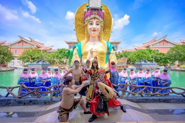 10:20 参观【老院子景区】穿越时空回到闽南渔村古厝,身临其境感受当地传统的渔村文化、民俗文化、妈祖文化,以及华夏五千年先祖文化。进门抬眼即是渔村码头停靠的远洋商船,海上丝绸之路在这里扬帆,通过老渔村的一物一景切实感受地道传统闽南文化,体验奇幻好玩的“醉酒小屋”、“镜子迷宫”、“现场博饼”等,追寻可歌可泣的下南洋历险,欣赏世界独一无二的“三面妈祖”动感显圣音乐喷泉大典,寻迹闽南特色民俗文化脉络;