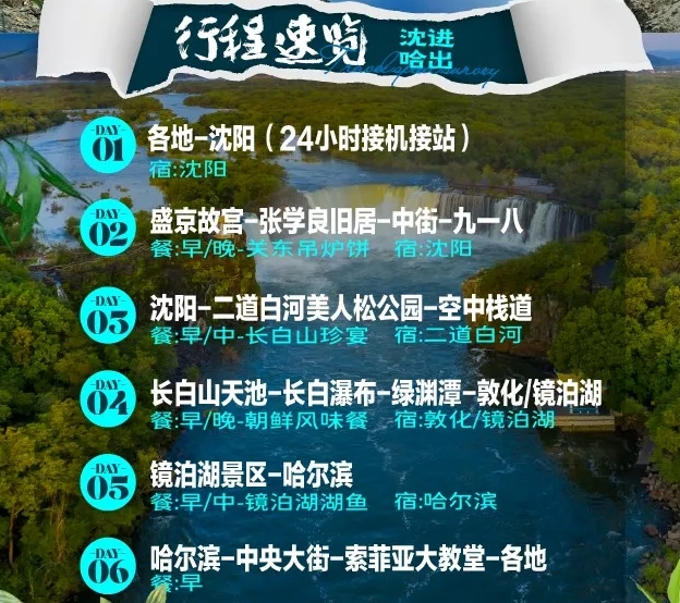 ● 根据航班时间(航班时刻较多,准确航班名单实际出票为准)送团,结束愉快东北长白山之旅