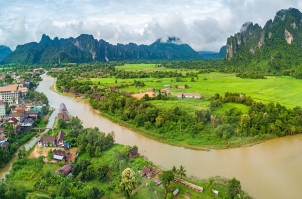 【万荣】。一座小城,两种风情。这里除了能够让你欣赏到秀美的自然风光,更是全世界户外运动爱好者的天堂。她既拥有与中国桂林山水、越南下龙湾相媲美的喀斯特自然地貌,蓝天白云,水绿山青,一派田园美景;她又有岩洞探秘、内胎漂流、山地自行车、热气球、卡丁车穿越、激情跳水、皮划艇……等一系列让你脸红心跳的极限运动项目。你可以跟随放荡不羁的探险者们,体验各种人生中的第一次;也可以静坐闲聊于南松河畔,尽享老挝当地特色美食,品一杯香浓醇正的老挝啤酒。