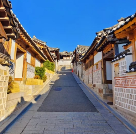 【北村韩屋村】赏秋景点(参观约 60 分钟)“北村 ”的韩屋群落是一片有着六百年历史的韩国传统住宅区,也是首尔最具代表性的传统居住地,且到处都有很多史迹、文化遗产和民俗资料。如今,这些纵横交错的小巷和青瓦房,为来自 世界各地的游人展示着百年前的迷人风貌。因此被称为城市中心的街道博物馆。北村的韩屋特点可概括为两点,即“进化的旧法”和“装饰化倾向”。虽然与传统韩屋相比,未具备完整的品格;如较低的屋顶斜度、圆梁、双屋檐、狭窄而多的房间数等,但是北村韩屋凝聚着韩屋的结构性和优美。