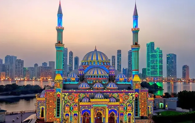 兰经雕塑而闻名。【酋长皇宫】(外观),【那不达大宅】(外观)(距今已有 150 年历史的老宅),【法萨尔王清真寺】(外观):位于沙迦市中心苏尔区,与伊斯兰市场、哈立德湖以及联合花园为邻。法萨尔王清真寺由多个楼层