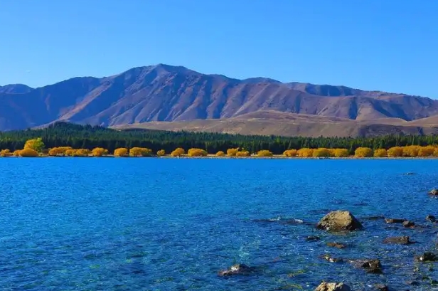 【普卡基湖Lake Pukaki】 (游览时间约为 15 分钟 ),蓝色湖水中映入梦幻色彩 ,称为[土耳其蓝色湖]--冰河遗留下的冰块石堆积所形成的堰塞湖 ,水源来自塔斯曼等数条冰河融化后所形成的塔斯曼河。冰河家呆的粉末杂 质 ,将湖水调成有如加了浓浓牛奶的蓝绿梦幻色彩 ,终年积雪的山脉环绕,营造出有如香格里拉班的仙境世界 ,成为魔界电影中迷人的拍摄场景。