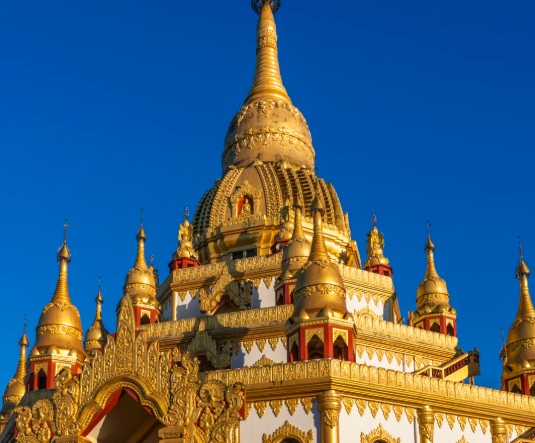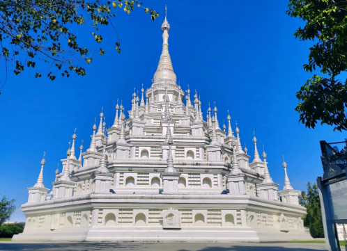 之后乘车前往瑞丽,抵达后游览【勐焕大金塔】(景点的游览时间大约为 1 小时),这座号称中国第一金佛塔,亚洲第一空心佛塔的古老建筑,拥有着鲜明的南亚傣王宫建筑风格,无论远观亦或是近看, 均能够感受到浓厚且极具民族特色的文化内涵。